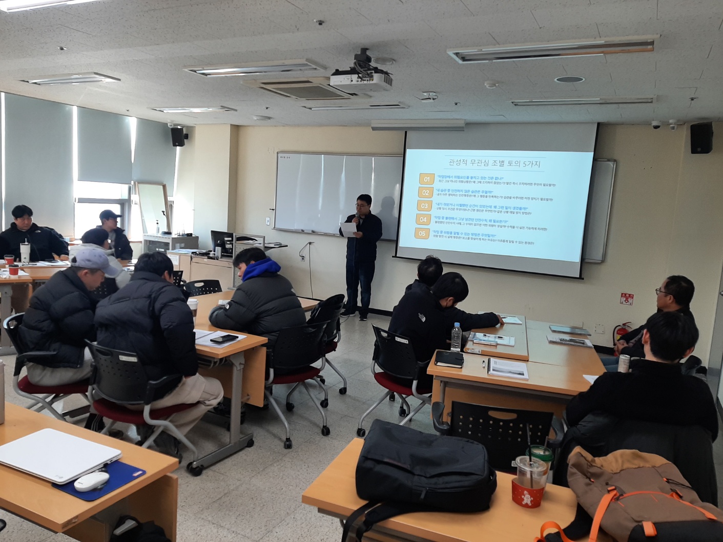 위험요인 발굴 및 위험성평가표 작성 실습을 통해 작업 중 잠재된 위험요인을 인식하는 능력을 향상시키는 교육이었다.