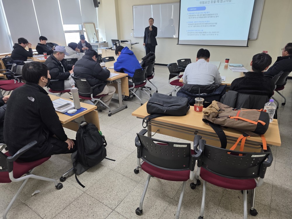 위험요인 발굴 및 위험성평가표 작성 실습을 통해 작업 중 잠재된 위험요인을 인식하는 능력을 향상시키는 교육이었다.